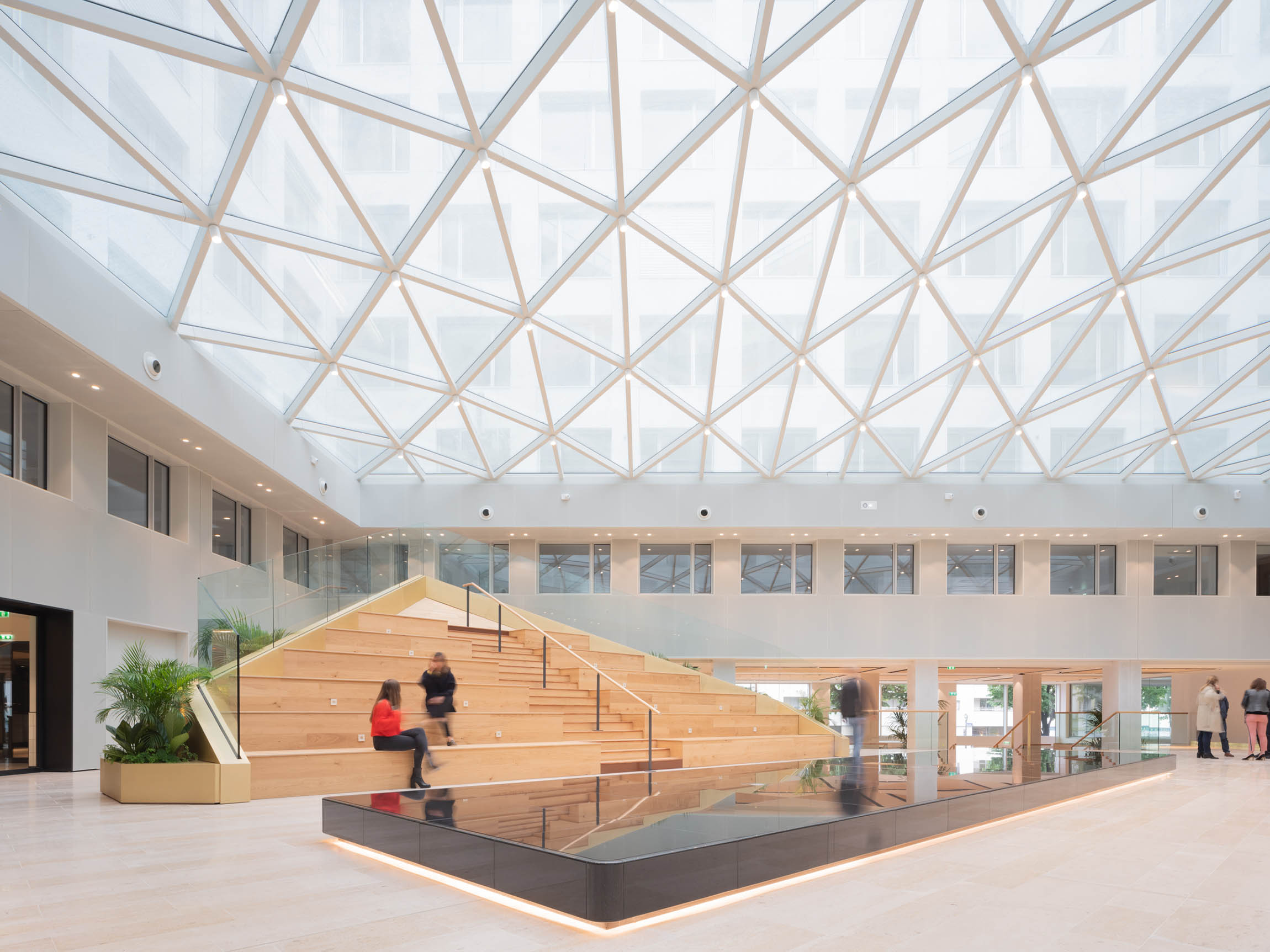 The building has particularly efficient office floors, offering tenants optimal flexibility in terms of layout and first-day working space throughout. This property also benefits from modern and contemporary architecture, a garden roof and rooftop space, climatic greenhouses on each floor and terraces with breathtaking views across Paris and its nearby neighborhoods.