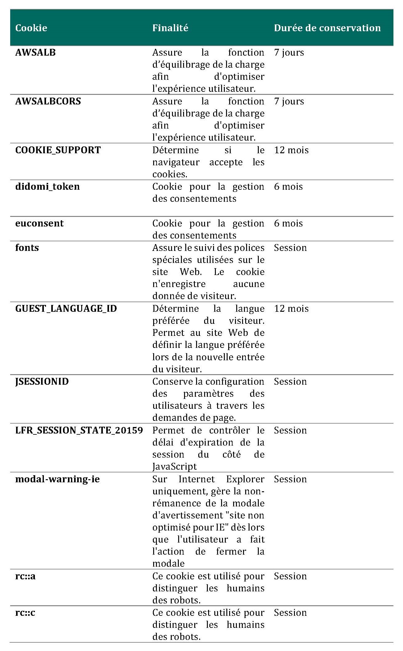 When you visit the site, a cookie management module informs you of the presence of cookies and invites you to indicate your preference. You can indicate your preference either globally for the site, or service by service. You can change your mind at any time by visiting our cookie management module.