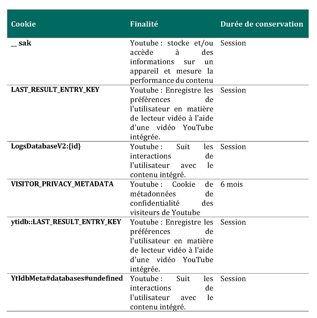 PURPOSES AND RETENTION PERIODS FOR COOKIES AND TRACERS