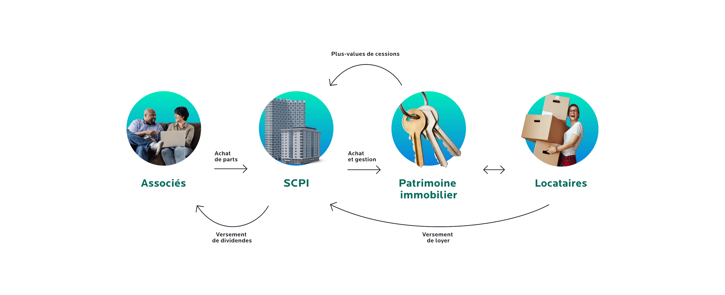 L’idée c’est que vous puissiez acheter des parts, 10 a minima, dans un patrimoine immobilier qui peut être composé de bureaux, logements, cliniques, écoles, commerces, etc... le plus souvent ; réparti en France et en Europe pour les SCPI gérées par Praemia REIM France. Praemia REIM France gère et valorise ce patrimoine sur le long terme. C’est une relation de confiance, sur des bases solides générant potentiellement des revenus trimestriels ! Investissez aujourd’hui pour demain !